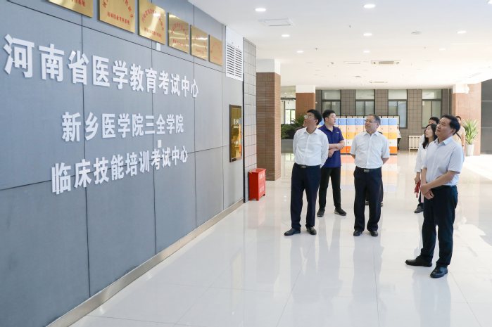 5月22日, 2021年住院医师规范化培训和助理全科医生培训结业考核在新乡医学院三全学院等考点同时进行,省卫生健康委科教处处长王金河,副处长张莉、刘淑娅等分别到各考点进行巡考。结业考核预计31号结束。今年全省参加考核的共7213人,是历年来参加人数最多的一次结业考核,其中我校考点承担了5246人的考核任务,占全省总人数的73%。