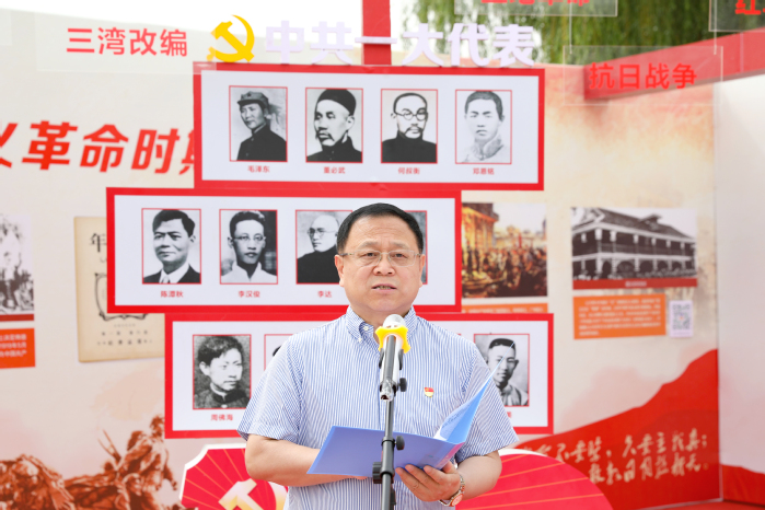 5月25日上午,我校“回眸百年党史,感悟初心使命”党史学习教育大型主题展览启动仪式在平原校区琴湖旁举行。校领导杨捷、胡仕坤、张钢、石永立、马波、薛宏、袁磊等出席,党委宣传部、党委办公室、马克思主义学院等党史学习教育相关部门负责人,各党总支(直属党支部)书记,各书院党员及入党积极分子代表参加。开幕式由校党委副书记吕莎主持。