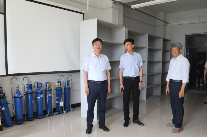 胡仕坤一行首先实地查看了培训现场,仔细询问了培训老师的授课情况以及学生的出勤率等问题。对于正在施工的麻醉学实验室和临床实训诊断实验室两个项目,胡仕坤详细检查了施工力量组织、建材供应、疫情防控安排等情况,要求安全有序推进项目施工建设,加强项目工地现场监管,全力以赴做好服务,保障项目加快实施。