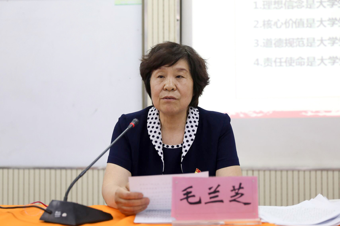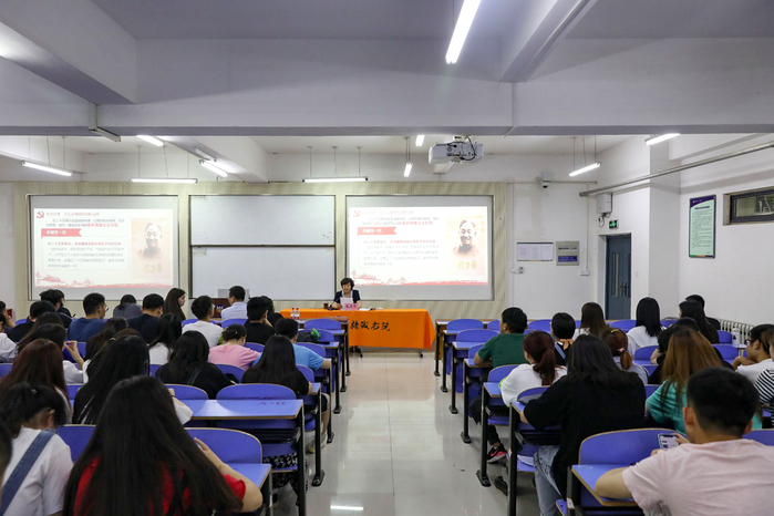 毛兰芝从“学史崇德,让长征精神照亮新征程”、“学史明理,深刻领悟立德树人内涵”、“学史力行,争做新时代品行高尚的优秀大学生”三个方面讲述。首先,通过视频的形式向在场同学讲述了红军长征途中作为八大经典战例之一的鏖战独树镇,教育同学们要继承革命前辈开创的伟大事业,在新的历史起点上推动中国特色社会主义航船继续破浪前进。此外,毛兰芝还就国家对于当代大学生德育的要求与在场同学展开讨论,教育同学们不仅要有足够的知识储备,良好的业务素质,更需要有民族使命感、社会责任感、社会良知和健康的生活态度,要将个人的发展着眼于人类未来发展中去,要主动思考国家和世界问题,做一个将个人学业、事业与国家、民族、人类命运紧密联系在一起的人。引导学生们要积极学习思想政治大课、阅读深思吃透原理、积极向党组织靠拢,坚定投入中国特色社会主义事业的决心。