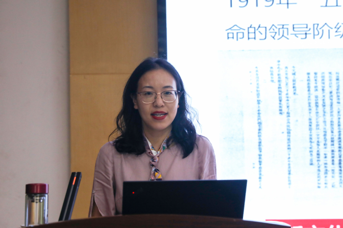 百年党史闪耀着智慧的光芒,五四精神、红旗渠精神、塞罕坝精神、伟大抗疫精神……是我们成长路上最丰厚的养料,是新时代每一位党员的“圣贤经典”、精神食粮。吕莎从五四精神的背景出发,向在场师生党员讲述了五四运动经过,将五四精神对于新时代青年的意义娓娓道来。她还讲述了发源于河南的“自力更生,艰苦创业,团结协作,无私奉献”的红旗渠精神,她指出:人民利益高于一切,是红旗渠精神的根本立足点;敢想敢干,实事求是,是红旗渠精神的灵魂;自力更生、艰苦奋斗,是红旗渠精神的体现。接下来,吕莎声情并茂地讲述了以王尚海、于士涛、尹海龙为代表的河北塞罕坝林场的建设者们听从党的召唤,在“黄沙遮天日,飞鸟无栖树”的荒漠沙地上艰苦奋斗、甘于奉献,创造了荒原变林海的人间奇迹的故事。中国人民用实际行动诠释了绿水青山就是金山银山的理念,铸就了“牢记使命、艰苦创业、绿色发展”的塞罕坝精神。最后,吕莎指出,中国共产党团结带领全国各族人民,进行了一场惊心动魄的抗疫大战,取得抗击新冠肺炎疫情斗争重大战略成果,创造了人类同疾病斗争史上又一个英勇壮举,深刻阐释了“生命至上、举国同心、舍生忘死、尊重科学、命运与共”的伟大抗疫精神。