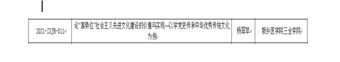 近日,河南省教育厅公布了高校庆祝建党100周年专项课题的立项名单,全省共有30个课题立项。我校杨翠苹老师的课题《论“高势位”社会主义先进文化建设的价值与实现—以学党史传承中华优秀传统文化为例》获批立项。