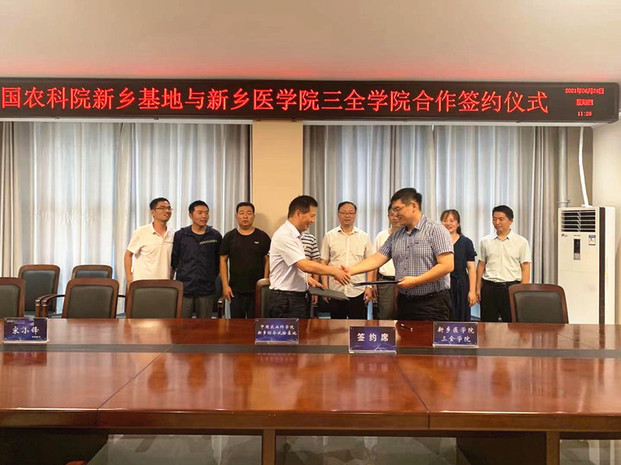 6月24日上午,我校与中国农业科学院新乡综合试验基地(以下简称:新乡基地)战略合作签约仪式在中国农业科学院新乡综合试验基地学术报告厅隆重举行。中国农业科学院农田灌溉研究所所长助理王景雷研究员、农田灌溉研究团队首席吕谋超研究员、综合试验基地办主任李晓东副研究员、中国农业科学院吴晓磊博士、新乡市农得惠科技服务有限公司副总经理位运粮、新乡中灌农业技术服务有限公司副总经理刘平,我校副院长邱永建出席,生命科学技术学院、产教融合办公室负责人参加。签约仪式由王景雷主持。