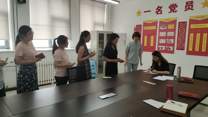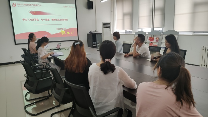 为庆祝中国共产党建党100周年,学习好、宣传好、贯彻好“七一”重要讲话精神。按照学校年度工作和党史学习教育要求,7月7日,外语系英语专业教研室党支部在行政楼二楼党员活动室开展“永远跟党走,奋进新时代”的主题党日活动。副院长马波出席会议,外语系英语专业教研室党支部全体党员参加,会议由外语系党总支副书记赵元雪主持。