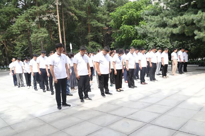 青山处处埋忠骨,烈士忠魂贯苍穹,这里没有尘世的喧嚣,只有苍翠的松柏傲然挺立。在庄严肃穆的哈尔滨烈士陵园,全体学员在朱瑞将军烈士墓前举行悼念仪式,肃立默哀、清扫墓碑,并向革命烈士纪念碑敬献花篮。“我志愿加入中国共产党,拥护党的纲领......”面对鲜红的党旗,大家一起重温入党誓词,以铮铮誓言再次做出共产党员的承诺。抚今追昔,是党带领人民从一个胜利走向另一个胜利;饮水思源,是无数革命烈士用青春和热血为人民换来了今天的幸福生活。本次活动对全体干部来说是一次深刻的党性教育和党性锻炼,大家纷纷表示,要继承并弘扬东北抗联精神,践行党员宗旨,发挥先锋模范作用,不忘初心、牢记使命。