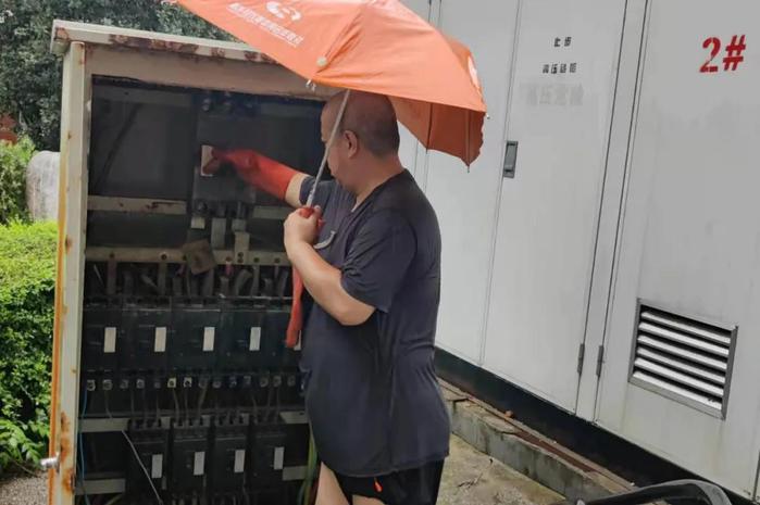 总务部的郭鹏飞也是严重休息不足,因为长时间在雨水中行走,双脚早已被浸泡得发白,他说;“暴雨面前,水电保障非常重要,可以让每一个在校人员安心。为了保障暴雨期间学校正常供电供水,我们联系驻地供电所工作人员24小时监看开闭所高压供电设备,对室内积水驾泵清排;对学校供水设备每日巡查两次;为了保障安全,防止触电,对全院路灯关停,对15台变压器巡查,对室内配电室巡查有无漏水情况,各楼漏水区域电源关停;排查校园楼宇平台,对排水管及时清理。”
