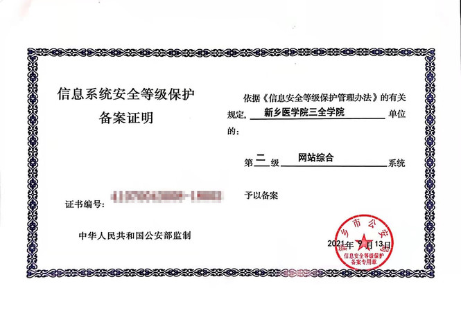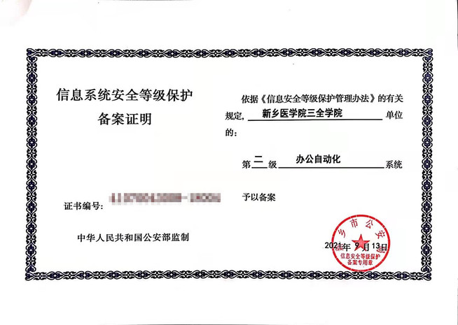保障信息系统安全是维护校园安全稳定的一项重要工作。近日,我校顺利通过信息系统安全等级测评,获得公安部门颁发的信息系统安全等级保护2.0备案证书。