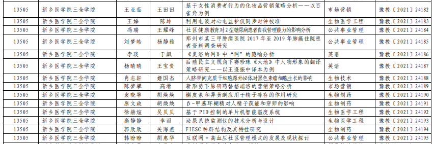 毕业论文(设计)不仅仅是学生顺利毕业的关键环节,更是检验一个学生理论知识与实践结合的重要手段。一直以来,我校高度重视本科毕业论文(设计)质量,并采取了一系列措施:一是探索专创融合,积极响应《国务院办公厅关于深化高等学校创新创业教育改革的实施意见》要求,将毕业论文(设计)深入融入到创新创业教育之中,在校期间开设一系列创新创业指导课程,实现专业教育与创业教育的无缝衔接;二是明确管理制度,出台了《新乡医学院三全学院本科生毕业设计(论文)管理办法》,规范管理毕业论文(设计)选题、开题、过程指导、答辩环节、成绩评定、总结、写作规范等各环节,明确了指导老师的遴选及激励;三是加强过程监控,引进中国知网大学生本科毕业论文(设计)全过程管理系统,对毕业论文(设计)进行全程信息化管理,定期公布毕业论文(设计)进展情况、教师指导学时情况,实时监控毕业论文(设计)进程与质量,采用“中国知网”大学生论文检测系统对毕业论文(设计)进行学术不端行为检测,并成立“毕业论文(设计)工作领导小组”,规范答辩流程,确保答辩工作规范、有序、高效。