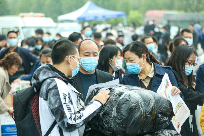 在迎新现场,一张张热情的笑脸,一句句亲切的问候,一项项贴心的服务,让来自全国各地的莘莘学子倍感温暖。据了解,为最大程度方便新生报到,学校在郑州火车站、郑州高铁东站、新乡火车站、新乡高铁东站等地设立了迎新点,根据事先统计的新生报到时间,每个站点安排2到4辆车循环接站。此外,学校还调派22辆大巴车和10辆观光车负责将新生及行李从校门口运到各个书院。近千名学生志愿者,遍布校园各个角落,为新生提供报到咨询、手续办理、行李寄存、物品搬运以及维持交通秩序等服务。近百名党员教师以及党员学生组建党员志愿者服务队,开展迎新服务及高校宗教政策、校园安全防范等方面的宣讲。