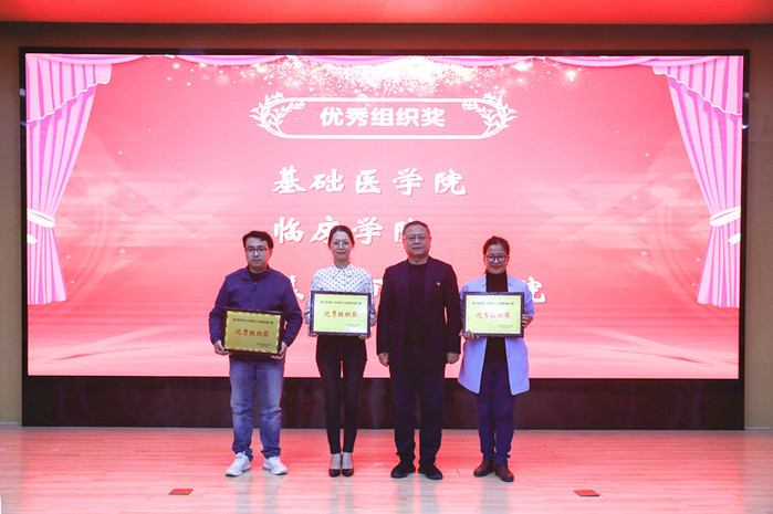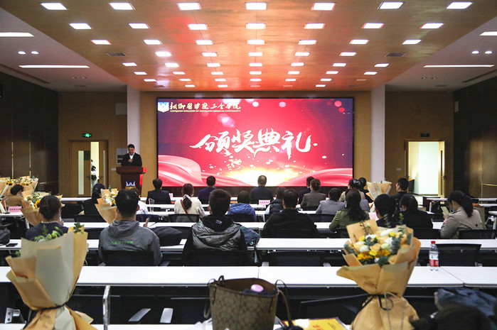 经过一整天的激烈角逐,大赛颁奖典礼在行政楼学术报告厅举行,党委书记杨捷、院长胡仕坤、副院长袁磊、教务长杜华贞、副院长王之玺出席,并分别为获奖选手、单位颁奖。仪式由教务部主任助理刘建勋主持。