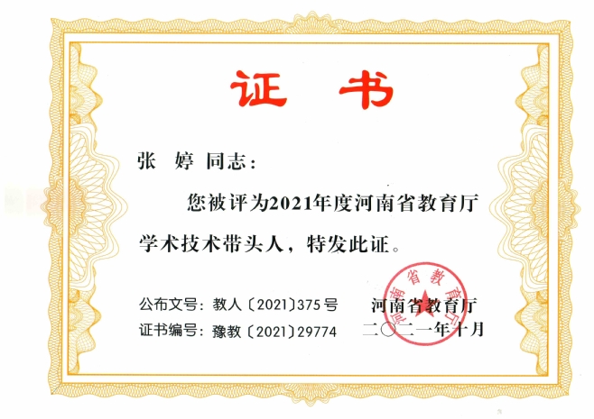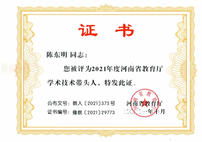近日,河南省教育厅下发《关于公布2021年河南省教育厅学术技术带头人入选名单的通知》(教人〔2021〕375号),我校健康管理学院教师陈东明、生命科学技术学院教师张婷荣获“2021年河南省教育厅学术技术带头人”称号。
