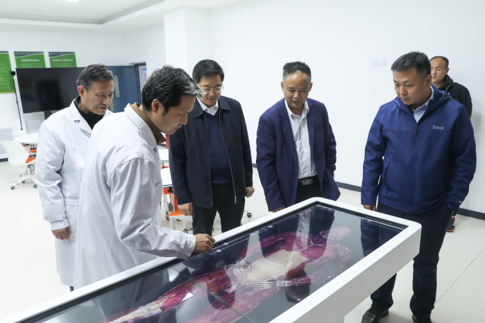 10月20日,南昌医学院副校长胡振宇、医学技术学院副牵头人朱鹏云等一行来我院考察交流,我校院长胡仕坤、副院长袁磊,医学影像学院负责人、各学科带头人、教研室主任接待来访。此次胡振宇一行来到我院考察交流,是为推进新医科建设,探索交流在健康中国背景下医学影像学、医学影像技术人才培养方案的创新、实用型人才教育体系改革以及现代化实验室建设。