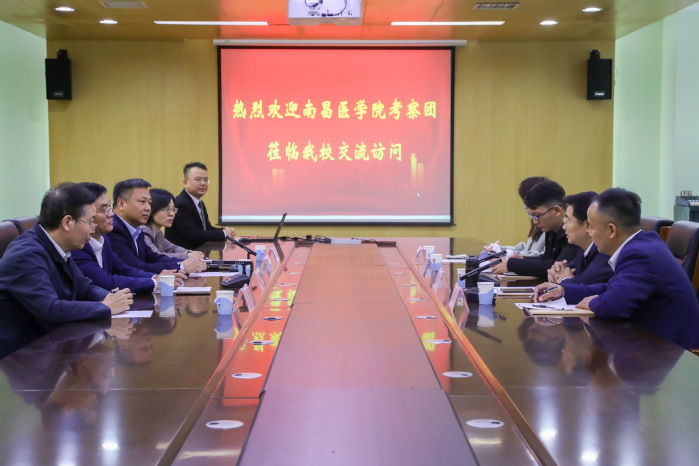 交流会上,胡仕坤对南昌医学院考察团的到来表示欢迎,并详细介绍了我校的办学定位和特色,以及专业学科建设和发展情况。随后袁磊陪同考察团前往医学影像学院、生物与基础医学实验教学中心进行实地考察,并听取了相关汇报。
