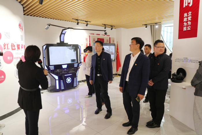 汇报会后,陈清江一行在院领导陪同下,先后来到学院新时代学习馆、图书馆、智行书院等处开展实地调研。在新时代学习馆,他认真查看了百年辉煌党史、历次党代会精神、中国共产党人精神谱系等展区。深入图书馆各开放区域,详细了解馆藏图书及图书馆运行情况。在智行书院,陈清江现场体验了VR党建学习设备,对我院创新开展党史学习教育取得的成绩表示充分肯定,对推进书院制改革过程中积累的经验做法给予高度评价,对进一步落实立德树人根本任务、创新思想政治教育等方面提出要求和建议。