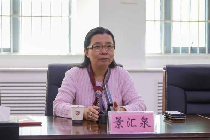 首先,全体与会人员观看了学院宣传片,王之玺对景汇泉的到来表示热烈欢迎,并向她介绍了学院的概况、专业设置、发展规划和办学成果,并向与会人员介绍了景汇泉教授的履历。