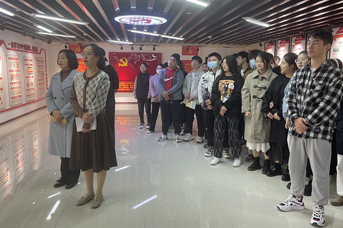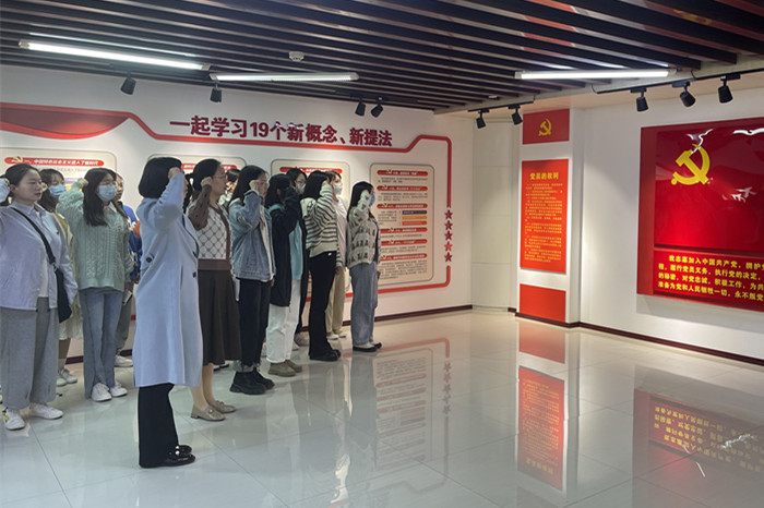 第一个环节:大家来到新时代学习馆,在讲解员孟佳慧的带领下,一起参观了“不忘初心学党史”“继续前行知党情”“红色记忆铸党魂”“铭记誓词感党恩”“牢记使命跟党走”“走进新时代开启新征程”六大专题展区,全面展示了我党波澜壮阔的奋斗历程和举世瞩目的辉煌业绩。随后,全体党员同志重温了入党誓词。