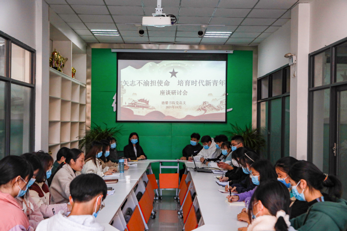 为进一步推动领导干部上讲台开展思想政治教育工作落实落地,进一步增强思想政治工作的针对性和实效性,全面贯彻落实党的教育方针和立德育人的根本任务。11月11日,德馨书院党总支在书院会议室召开“矢志不渝担使命 培育时代新青年”专题思政教育研讨会。我校教务长杜华贞出席会议,德馨书院党总支全体教职工党员及2021级学生代表参加。
