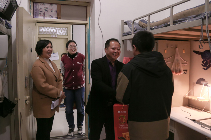 在调研的最后,石永立来到学生寝室,慰问家庭经济困难学生。他亲切地询问了同学的基本情况和困难,并送上学校对学生的关爱和慰问品。