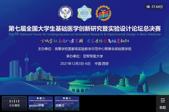 本次大赛采取线上全程直播形式举办,全国各地共21.64万人同时在线收看,远超同类型比赛在线收看人数。“全国大学生基础医学创新研究暨实验设计论坛”是我国基础医学领域最具影响力的大学生科研展示活动,已连续举办六届并反响巨大。