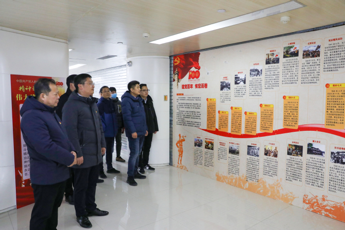 比赛结束后,全体人员到“新时代学习馆”参观学习,在讲解员的指引和讲解下,从“不忘初心学党史”、“继续前行知党情”、“红色记忆铸党魂”、“铭记誓词感党恩”、“牢记使命跟党走”、“走进新时代 开启新征程”六个专题展区学习了我党近百年来波澜壮阔的奋斗历程和举世瞩目的辉煌业绩重点学习了党的十九届六中全会精神以及党史学习教育的专题内容。最后,大家在韩丽的带领下集体宣誓,重温入党誓词。