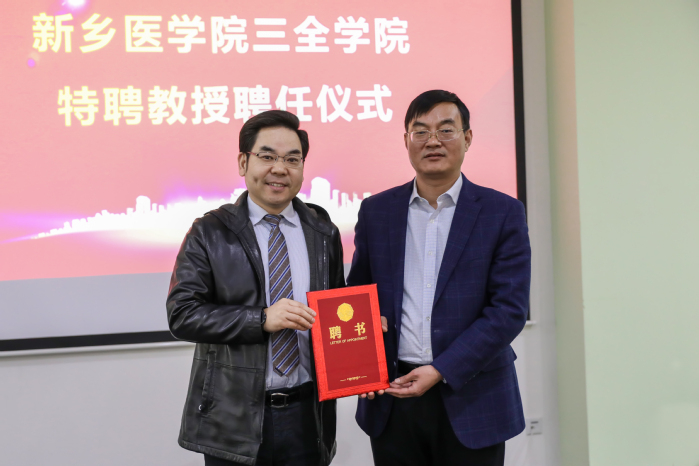 首先,胡仕坤对五位教授的到来表示热烈欢迎,并介绍了学校的发展历程、概况、办学成果、发展规划、科研和学科建设情况、聘请专家的重要性。他着重介绍了我校两个校区的办学模式、现有的院系和机构设置,“书院+院系”的“双院制”全新育人模式。他指出,我校秉承“全面适应社会需求,全面实施素质教育,全面培育医学英才”的办学指导思想,坚持建设地方性、高水平、有特色、应用型的新型高等医学院校的发展目标,不断推进学校向前发展。