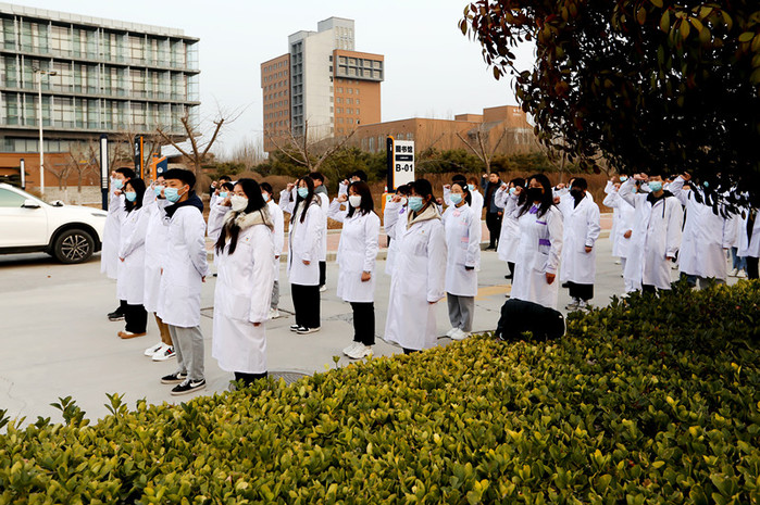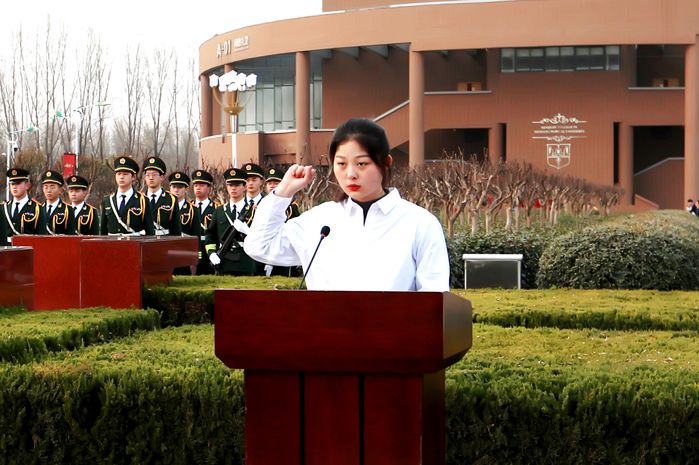 仁智书院李丹阳同学作为学生代表进行发言:“做为一名医学院校的学生,我们要发扬求实、创新、团结、高效的精神,牢记“救死扶伤”、“无私奉献”的坚定信念;努力扛起肩头的责任与担当。”最后,智行书院孙伊璇同学带领全体师生重温入团誓词,仪式在铿锵有力的宣誓声中结束。