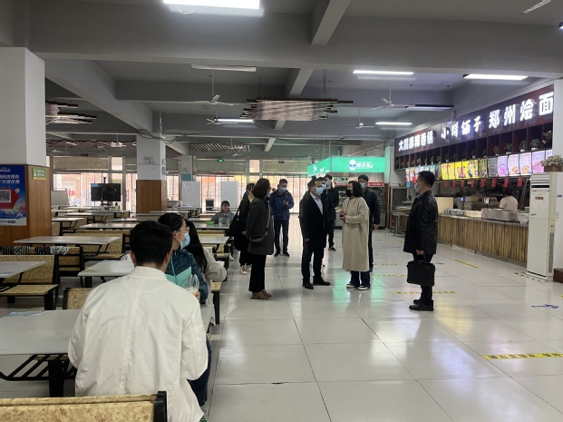 石永立一行先后到学校门口、二公寓以及餐厅等地进行查看,并询问了新乡校区封闭管控期间疫情防控、校园消杀情况以及学生学习、生活情况。杨蕾就校园情况进行了详细汇报,首先是严格核验入校人员身份并测温,守好校园安全第一道防线;每天对校区进行多次消杀,对公寓楼、餐厅等区域重点消杀;为二号公寓楼师生免费供应防疫物资以及每日餐食;学生在宿舍线上学习,还能轮流在公寓楼的天井处进行简单的体育活动。