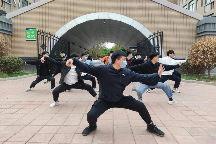 白鹤亮翅、手挥琵琶、左右搂膝拗步……辅导员朱洋洋从来没想过,大学期间学到的太极拳在疫情期间排上了用场。4月初,在排查宿舍的时候,获悉有同学想学习太极拳。求人不如求己,朱洋洋决定亲自上阵。“有十几个学生跟着学吧,感觉还不错,既能锻炼身体,还能拉近和学生之间的关系。”朱洋洋说。