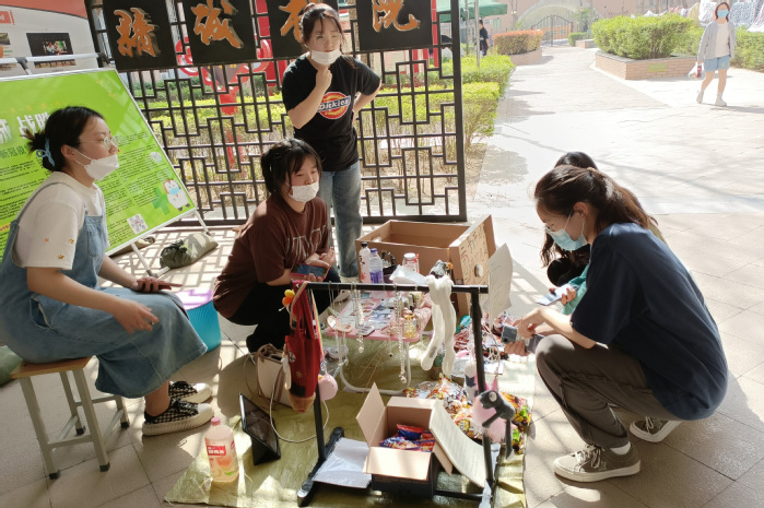 人间烟火气,最抚凡人心,各个书院“跳蚤市场”非常红火。在德馨书院,女生们把自己多余的包包、头饰等摆出来;男生们把自己不穿的球鞋、不用的吉他拿出来出售;还有学生出售二手电子产品,如键盘、手机、电脑散热器等。