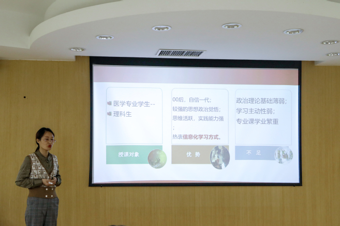 为深入学习贯彻习近平总书记在学校思想政治理论课(以下简称“思政课”)教师座谈会上的重要讲话精神、特别是“大思政课”重要指示精神,贯彻落实中共中央办公厅、国务院办公厅《关于深化新时代学校思想政治理论课改革创新的若干意见》和中共河南省委教育工委、中共河南省委宣传部教育《关于开展全省学校思想政治理论课教学技能“大练兵、大比武、大展示”活动的实施意见》(豫教工委〔2022〕4号)文件要求,结合学校实际,4月28日,新乡医学院三全学院坚持好中选优,优中选强原则举办思政课教学技能“大练兵、大比武”决赛。本次比赛由学校思政课教师“大练兵”工作领导小组牵头,马克思主义学院组织落实,党委副书记吕莎、教务长杜华贞、教师教学发展中心顾问马振江教授担任评委,10位教师进入决赛,马克思主义学院全体教师观摩比赛。