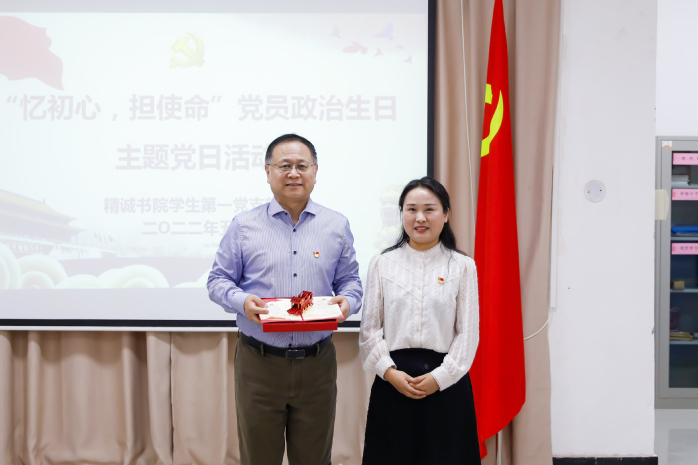 为使党员重新回忆党组织的培养历程,强化党员宗旨意识,提醒党员始终牢记入党时的铮铮誓言,5月17日,精诚书院学生第一党支部组织全体党员开展以“忆初心,担使命”为主题的党员政治生日主题党日活动。我校党委书记杨捷以普通党员身份出席活动。