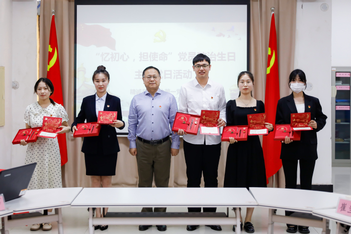 随后,杨捷为本次过政治生日的5位党员赠送了政治生日贺卡和礼物。最后,杨捷以主题党日活动为契机给全体党员上了一堂“初心课”,从学习、工作、生活等方面对支部党员提出了期望和要求。他勉励全体师生党员思想上要永远保持先进性;要坚持学习,学政治理论,学科技文化,不断提高思想素质和道德素质,要关心国家大事,做到思想进步,政治可靠。行动上要永远保持积极性。要常怀吃苦奉献精神,长存创新创优意识。工作中,要当模范,当标兵;学习上,要争优秀,树榜样;日常里,要讲奉献,立旗帜。品质上要永远保持纯洁性。要做的比别人好,走的比别人正。要严格要求自己,不断用行动锤炼党性,永远保持健康美好、纯洁正直的人生品质。
