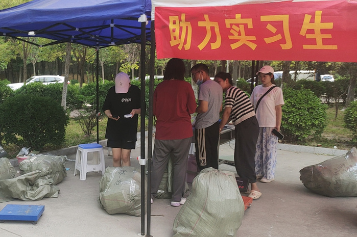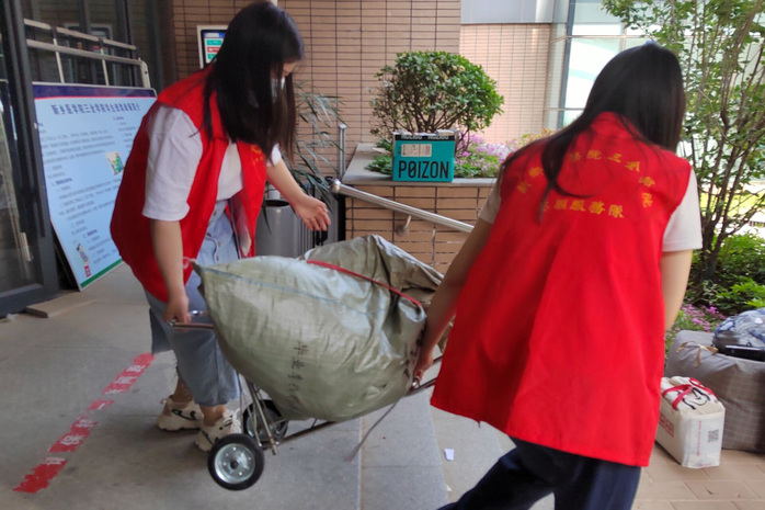 在智行书院,50多名大一、大二学生组建了爱心服务队,为曾经迎他们入校的学长学姐送行。服务队分工明确,有的负责搬运,有的负责整理,有的负责运送。为了提供更精准的服务,志愿者们还租了便于运送行的三轮车,提前与需要帮助的学长学姐沟通,确定他们的具体离开时间和行数量。