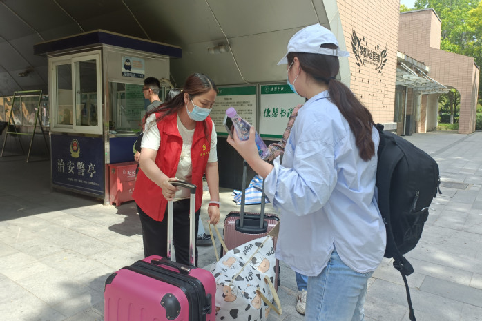 2020级医学影像技术62班靳前说:“疫情期间,宿管阿姨为我们晒被子;离校返乡,宿管阿姨又给我们送行,在书院宿管阿姨这里,我们就没羡慕过其他学校!”