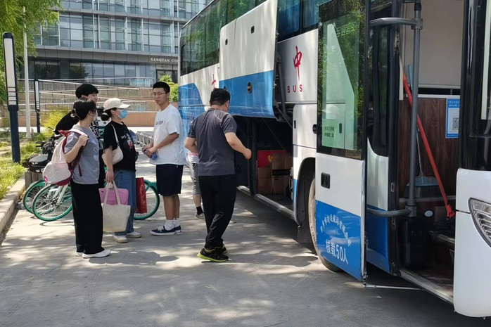 “同学们,火车站的这边乘车,高铁东站的上这一辆,都别上错车,上车前请出示离校通知单。”28日下午,在平原校区图书馆门前,学务部老师和书院辅导员们的爱心提示,让现场变得更加有序。