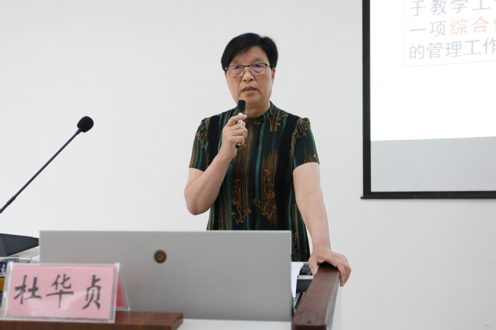 杜华贞从教学管理工作的特点、与上级部门及领导的汇报、与同级部门的沟通、与同级部门沟通协调的艺术、如何做好外单位人员的接待原则、对群众投诉的接谈和处理等六个部分分别进行了阐述和探讨。她首先指出,教学管理不同于教学工作,是一项综合性很强的管理工作,对内要正确领会贯彻学校对教学工作部署,做好全校人才培养的工作,协调好各教学单位的关系。对外要加强学校与政府单位、教学医院的公共关系,树立良好的学校形象。目前,教学管理的理念应该为强管理、重效率、善协调、讲服务、厉节约。管理人员要提升总揽全局、推进发展、科学管理、应对突发事件的四种能力。管理团队要做到讲学习、树风气、顾大局、勤思考、善谋划、多办事。要坚定地贯彻上级精神,加强督导督办,进一步提高执行力,提高工作效率。努力打造成一个工作高效率、服务高质量、技能高水平的团结、奋进、有凝聚力的团队。建设具有一流职业素养、一流业务技能、一流工作作风、一流岗位业绩的队伍。
