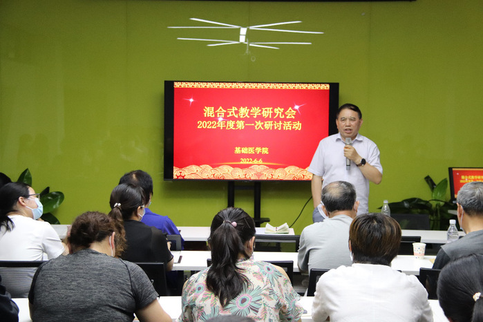 本次研讨会是基础医学院“课堂教学质量提升年”系列活动之一,通过本次交流活动,参会教师进一步认识和理解了混合式教学的内涵,有利于课程建设及混合式教学的顺利推进和实施,进一步提升教育教学质量。