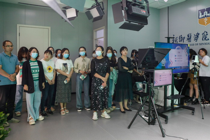 讲解员热情为老师和同学们讲解环境设备实现的功能,护理学院教师代表田平平现场进行教学内容讲解演示崇德书院的学生代表贺静、陈泉良等人进行小组试录录制画面清晰,播放声音洪亮,全体在场教师进行观摩教师们根据自己录制需求,对新环境和新设备提出技术融合相关问题,教育技术中心工作人员逐一解答