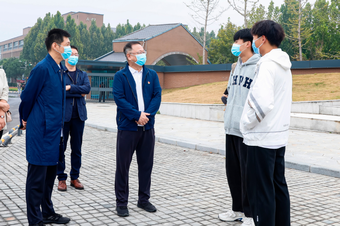 为扎实做好国庆假期学校各项安全稳定工作,10月1日上午,校党委书记杨捷、院长胡仕坤分别带队对我校新乡校区与平原校区进行检查党委副书记张钢副院长马波、顾欢带领学校有关部门负责同志到校门口、学生公寓、辅导员办公室、食堂、超市等场所,检查指导校园安全和疫情防控工作,慰问一线值班教职员工。