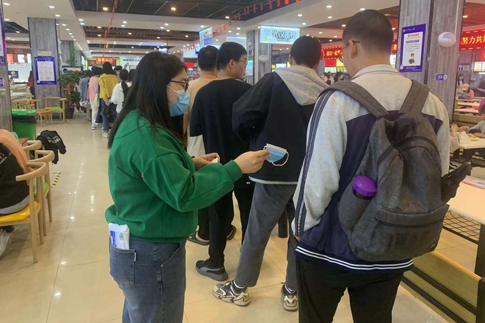 为确保国庆节期间的校园各经营场所防疫安全工作,后勤安排工作人员值班、值守,倡导师生加强自我保护,在进入餐厅等公共区域坚持佩戴口罩,自觉接受管理,主动扫描“场所码”共同维护疫情期间正常学习生活秩序,工作人员连续2天为师生免费配发12000余片一次性医用防护口罩;组织工作人员做好食堂、超市、快递等重要部位的卫生消毒消杀工作,为师生欢度国庆提供有力保障。
