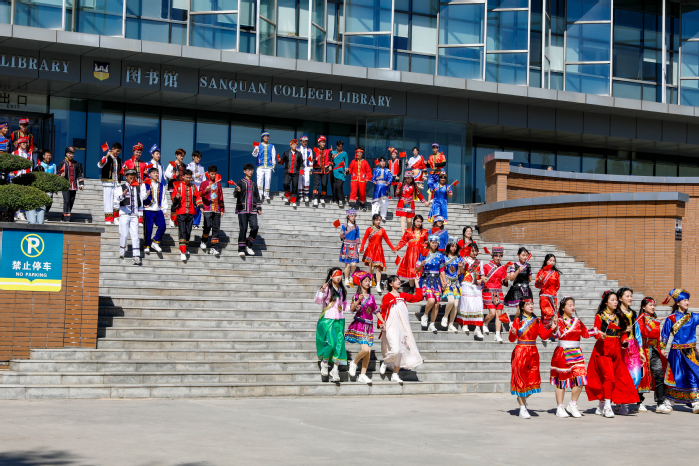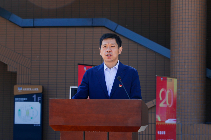 上午11点30分,启动仪式正式开始学生代表身着56民族传统服饰,挥舞着国旗,歌唱《我和我的祖国》与领导一起走向闻德礼堂。副院长顾欢致辞,他向学生们阐述了习近平总书记对新时代青年的教诲,并提出三点要求,第一,向阳而生,胸怀壮志。第二,向内求索,砥砺创新。第三,向下扎根,脚踏实地。同时希望同学们,紧跟祖国步伐,不忘百年初心,坚定理想信念,传承红色基因,努力为新时代贡献青春力量