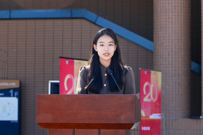 德馨书院医学检验技术专业赵欣雨作为学生代表发言,她说,作为新时代青年,我们要勇于肩负起时代赋予的重任,立鸿鹄之志并脚踏实地,努力成为学有所长、技有所精的国家栋梁之材。