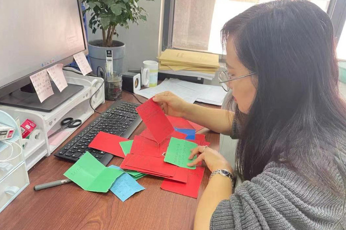 深夜12点,智行书院辅导员杨卫红还在整理宿舍走访的情况,根据学生的诉求,她罗列出了次日要完成的工作内容。据了解,每天晚上,她都会带着班长和班委们深入学生宿舍,对学生的思想动态、网课情况、心理状态等进行详细摸排,第一时间了解他们的诉求。