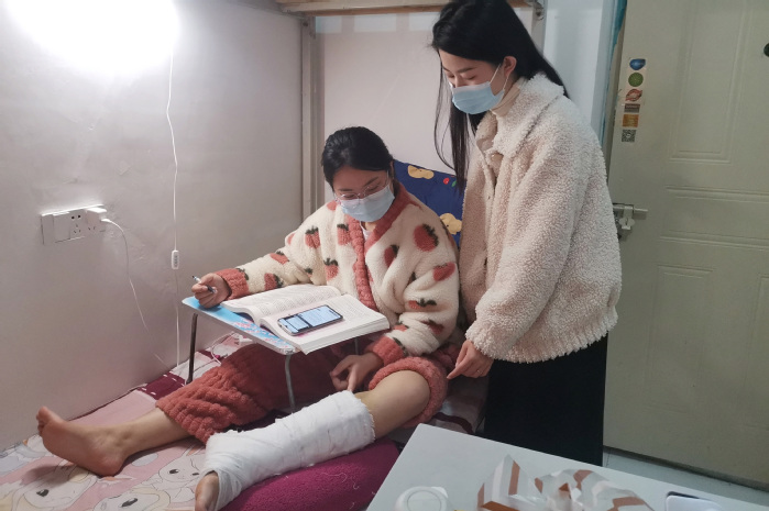 10月27日,对她职业生涯来说是印象很深刻的一天。晚上八点多,突然她的手机响起,QQ语音、微信语音……她当时就有种不好的预兆,不会是我的学生出事了吧……正当疑惑时,学生在电话中急促地说,“老师你快来,咱四楼浴室有人晕倒了,是咱班学生。”作为新任辅导员,第一次遇到这种状况,内心很担忧。赶紧给书院党总支副书记杨翠苹打电话,然后她第一时间赶赴现场并联系校医院医护人员,同时联系学生家长,了解学生是否有过往疾病史…在宿舍经过输液打针、测量血压等,学生也渐渐恢复意识,心率血压也恢复了正常。但考虑到学生身体情况,想着还是让学生去医院做个全面检查比较好。当时已经是晚上十一点多,疫情最严重的时刻,医院是否接收?去了医院是否还能返回学校……一系列的问题在魏欣珂的脑海里不停地闪现着。但顾不了那么多,学生的安全必须放在第一位,她坚定地说“杨书记,让我陪学生去医院检查下吧,您看能不能向学校申请车辆?”就这样,在一切未知的情况下,她带学生到达新乡市第三附属医院,到了医院做各种检查,拍脑CT一直到凌晨1:30,检查结果出来了,一切正常,悬着的心终于放下了。