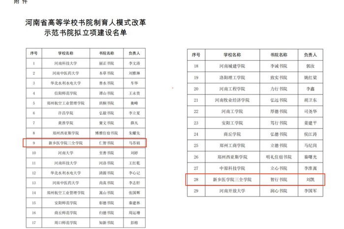 12月5日,河南省教育厅公示河南省高等学校书院制育人模式改革示范书院拟立项建设名单。我校推荐的仁智书院、智行书院双双立项成功,喜获佳绩。