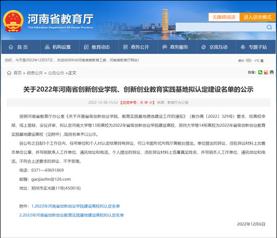 近日,河南省教育厅公布了《关于2022年河南省创新创业学院、创新创业教育实践基地拟认定建设名单的公示》,经学校申报、线上答辩、省厅评审,我校成功入选省级创新创业教育实践基地,全省仅有14所高校获评此项荣誉。