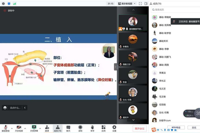 12月30日晚,魏慧平老师进行教学设计组分享交流,她从大赛文件解读、参赛历程、作品展示、经验总结四方面进行,结合自身参赛经验,强调要注重平时的日积月累,才有比赛时的实力;开放思想多尝试,常思常新提升教学能力;潜心研学,努力提高,把握机会,充分准备,在磨炼中成长,在教学里获得快乐!分享结束,基础医学院教师王秀菊、赵晓会、程小飞就课程思政的考核评价与融入方式、备赛经验技巧等问题与魏慧平进行广泛深入细致的交流和讨论,大家表示通过此次活动对专业课的课程思政建设和教学设计应用受益匪浅。