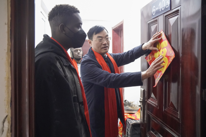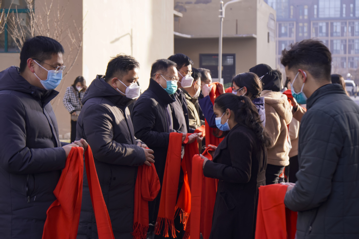 在国际学生公寓,国际学生用中文演唱欢快的歌曲《新年好》,校领导和同学们互赠红围巾,现场洋溢着浓浓的中国年味儿。校领导了解同学们的生活和学习情况,发放节日慰问品,表达新春祝福。他们鼓励大家在校努力学习,不断提高医学水平,做好中外科技文化沟通的桥梁。留学生们对留校生活表示满意。