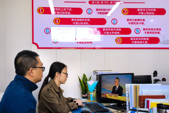 精诚书院党总支书记张新说,作为一名教育工作者,一定积极响应党和政府号召,不畏艰难险阻、敢于担当、创新工作思路和工作方法,立足自身工作,奋力做好书院学风建设、思想政治教育、大学生就业等各项工作,推进书院教育事业发展,提高教书育人质量。同时,作为一名“培根铸魂”的基层党务工作者,也深切感受到了自己身上沉甸甸的担子,我们一定进一步提高政治站位,认真贯彻落实“两会”精神,不忘初心、牢记使命,引导教师以德施教,教育学生以德立身!