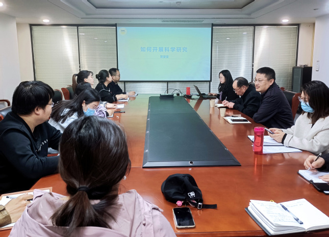 近日,为加快提升教辅单位的科研能力和水平,更好促进团队和个人成长发展,积极为学校建设硕士学位授予单位贡献力量,在学校副院长薛宏统筹安排下,教育技术中心、校园网络管理中心、图书馆组建了各自科研小组,组织开展了科研能力提升专题培训。培训在图书馆一楼会议室举行,副院长薛宏主持,各科研小组全体成员参加。